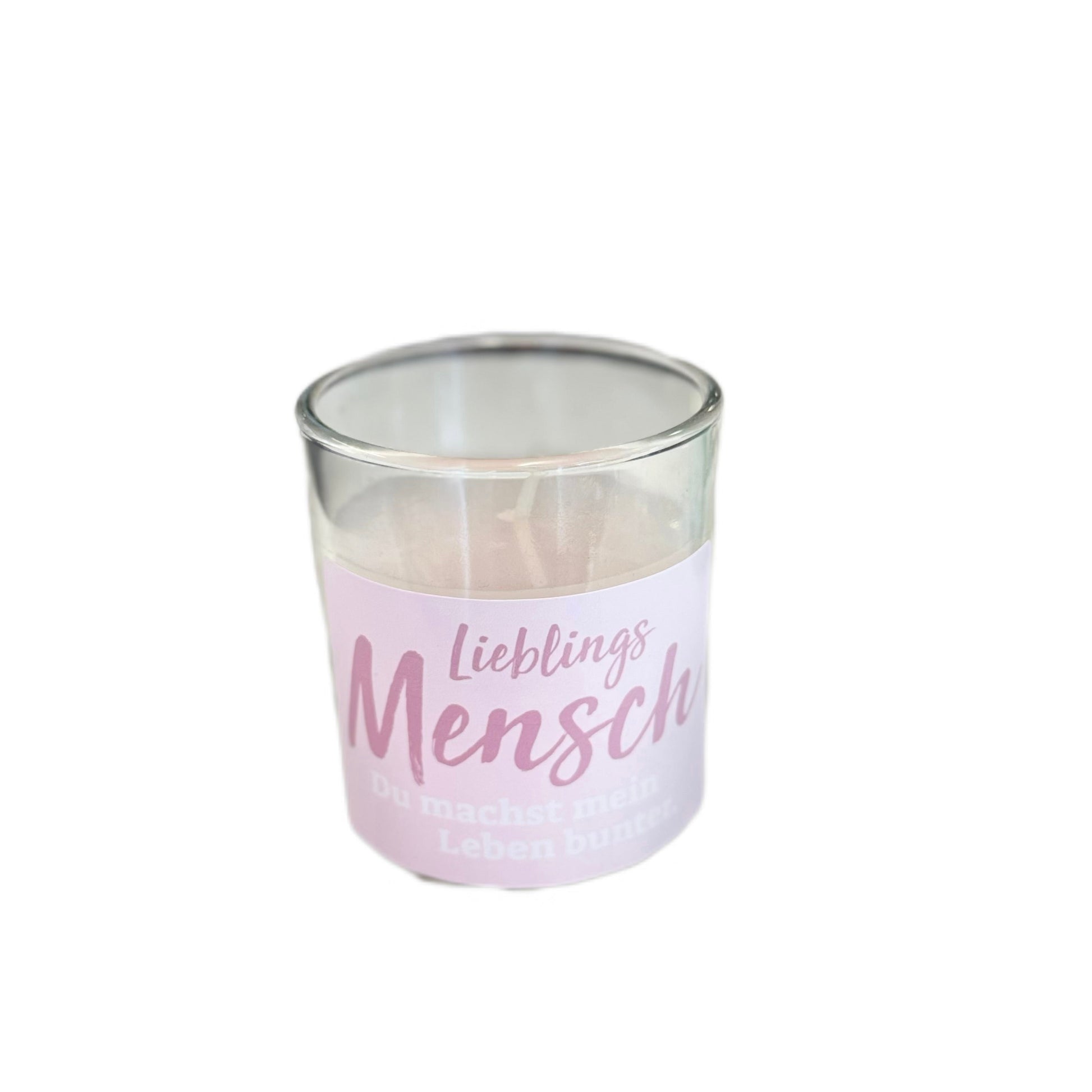 Duftkerze im Glas, beklebt mit Klarsicht-Etikette