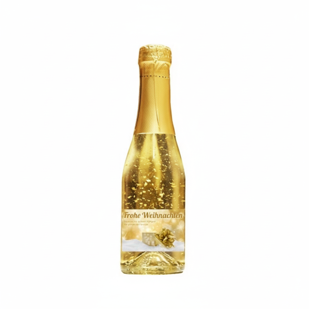 Frohe Weihnachten. Ein einzigartiges weinhaltiges Getränk mit einer leichten Pfirsich-Note. Der Goldsekt wird in Österreich produziert, komponiert aus den beiden Weinen Grüner Veltliner und Welschriesling.