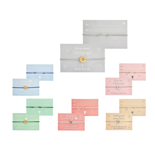 Schutzengel Armband, mit Sticker Anhänger aus Stahl (gold und silber), 6 Motive sortiert